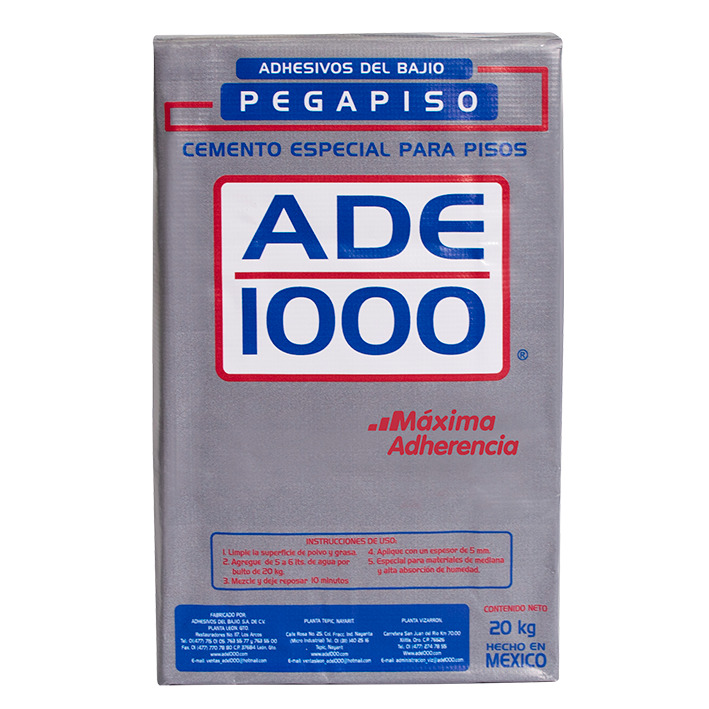 Pegapiso Gris ADE1000, es un adhesivo en polvo de granulometría controlada y aditivos especiales que brindan una gran adhesión y facilidad de aplicación. Cumplimiento de los requerimientos de calidad de acuerdo a la norma NMX-C-420-1