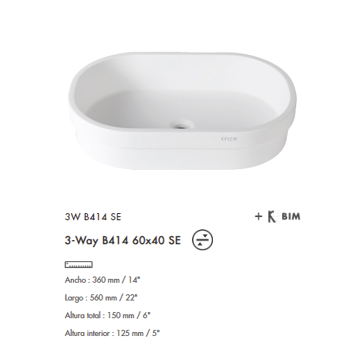 Lavabo 3-Way B414 SE 60×40 Krion